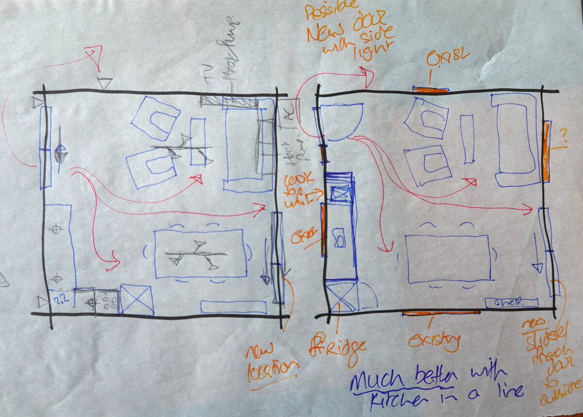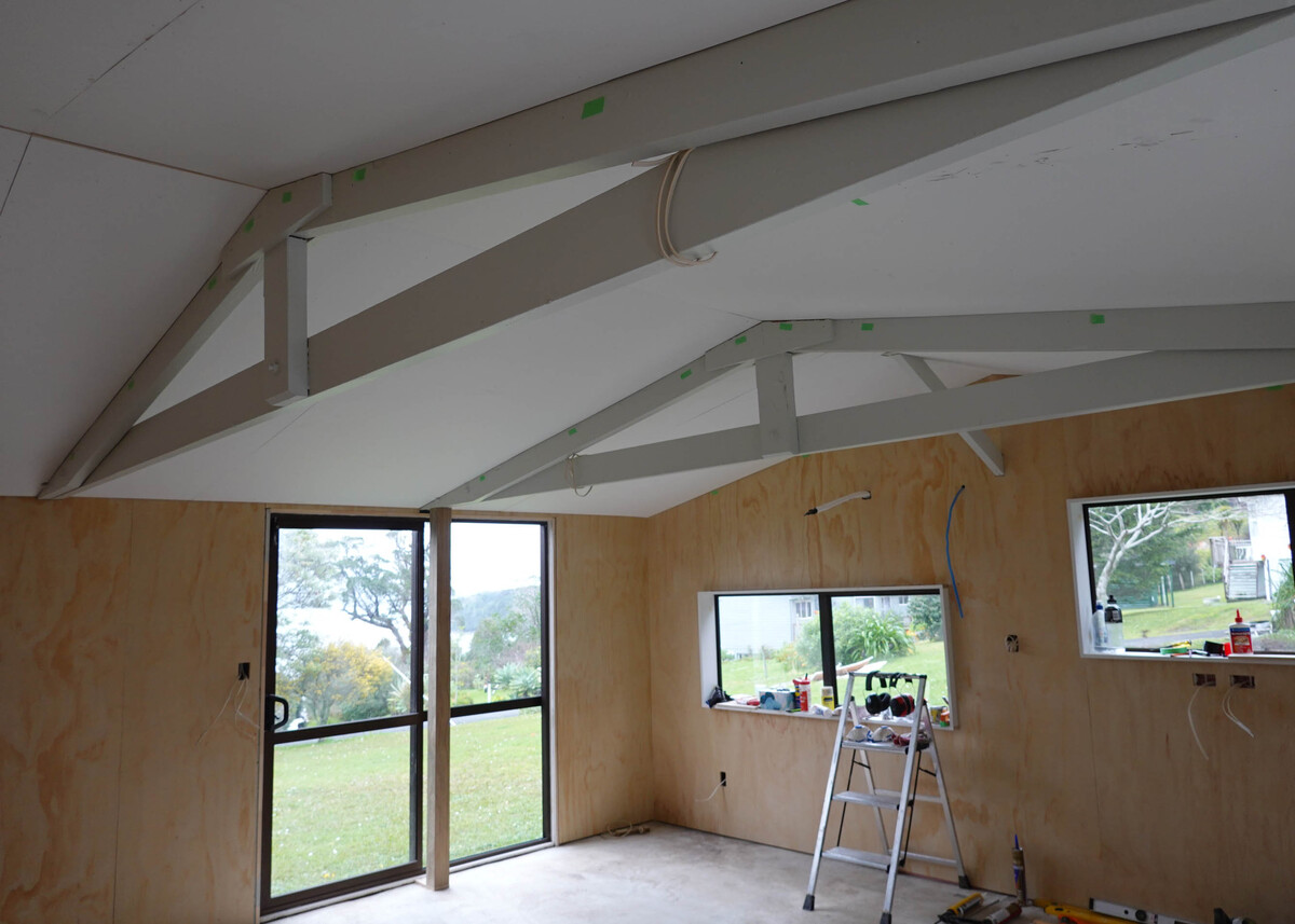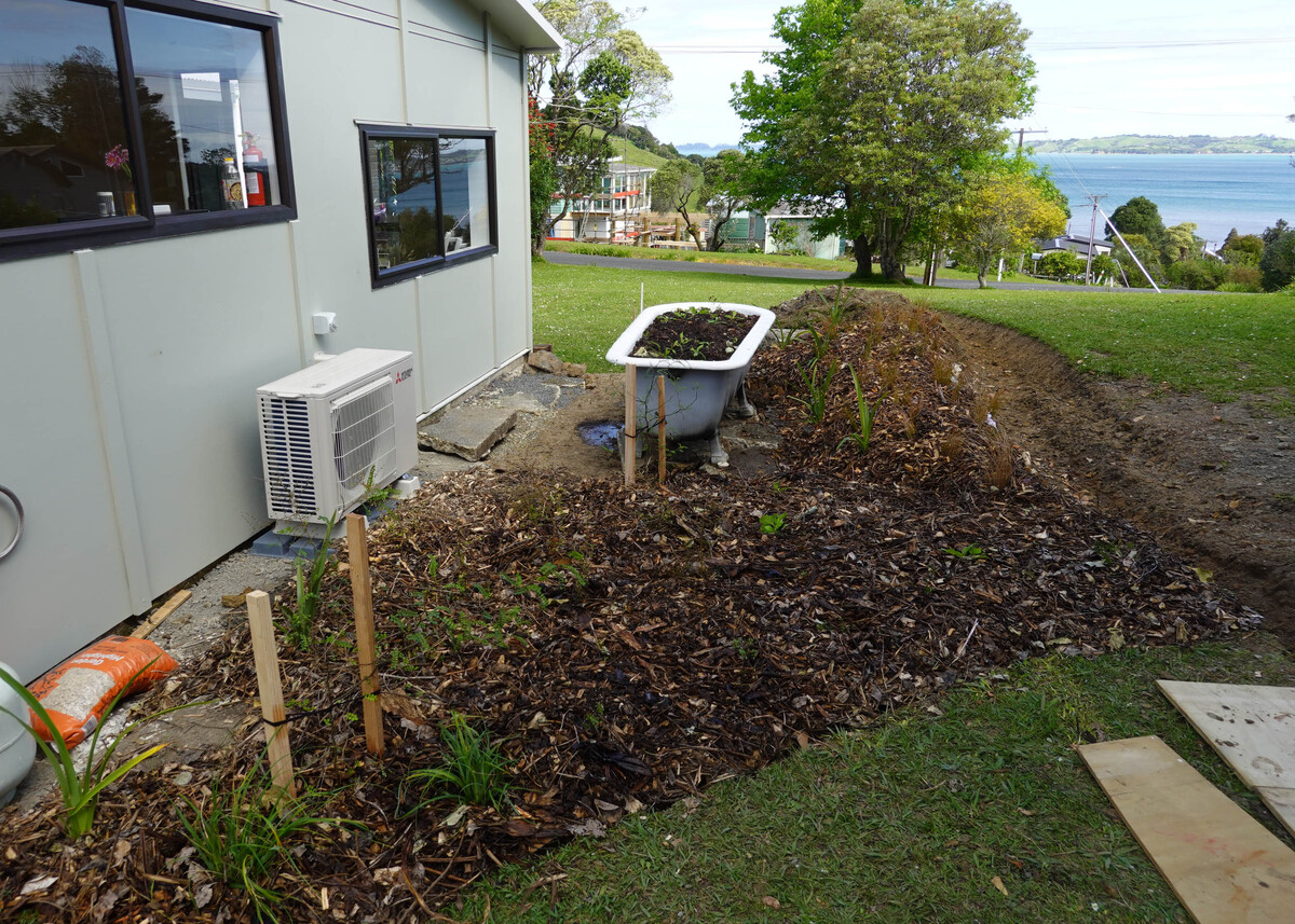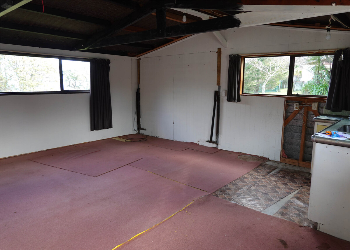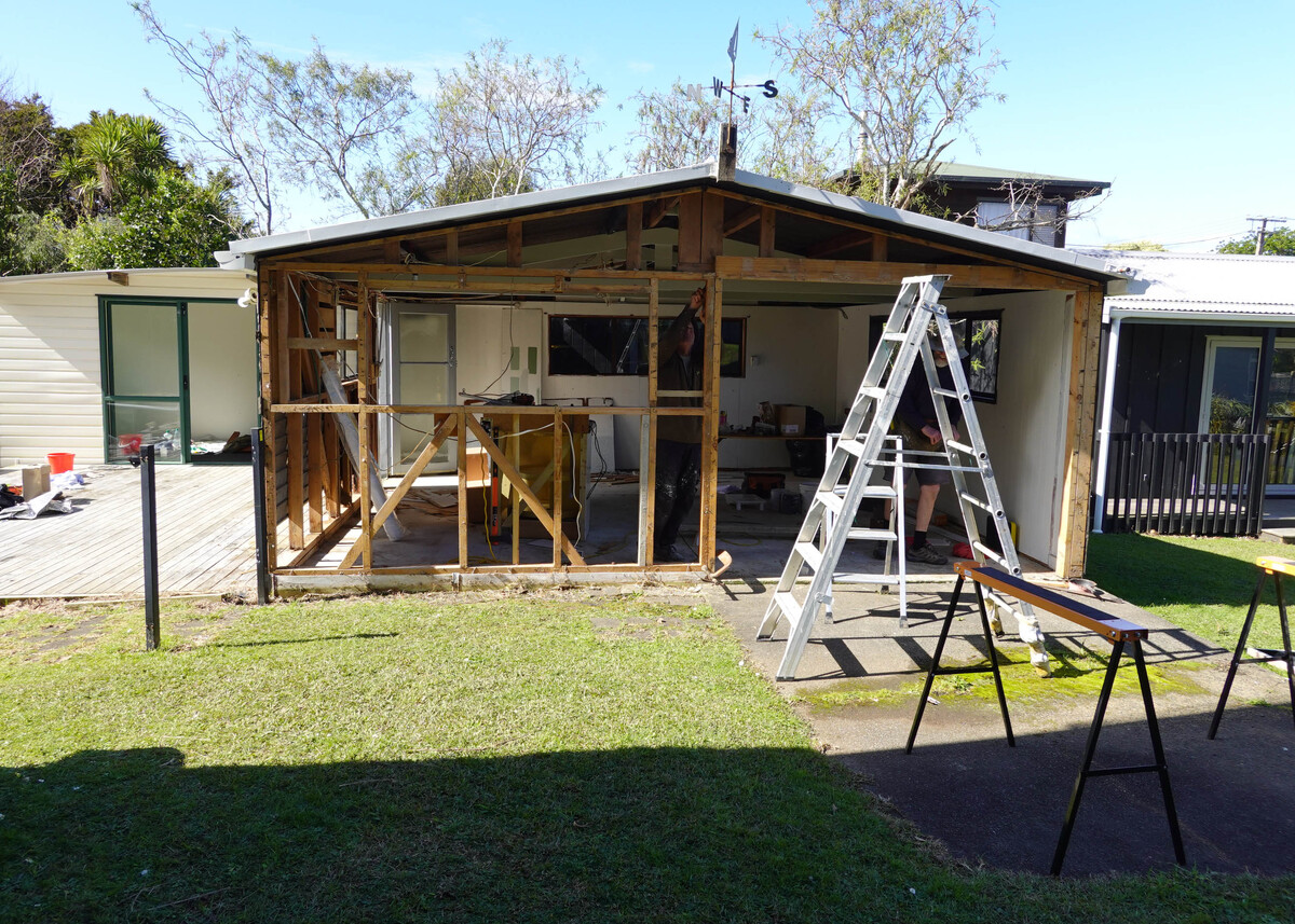 Booking the accommodation of your choice - Queen Cottage, Twin Cabin, or both, gives you exclusive use of the open-plan living and dining shed. The Shed is undergoing a complete makeover, in time for the Summer of 2025. Building works are now largely complete - just the floor finish to go and we will be putting it back together. The vintage kitchen has been reinstated and the claw foot bath outside the window planted up as a landscape feature. Fully insulated and with a brand new heat pump, the Shed will be a great place to relax, with decks either side for your choice of bush or sea views.