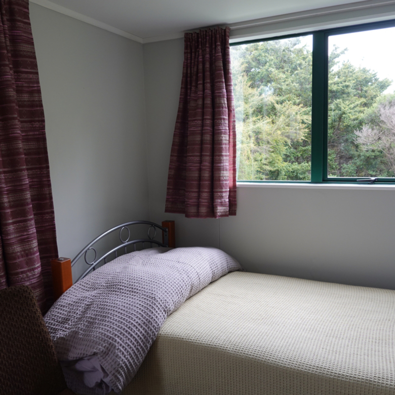 The Twin Single Cabin offers a comfortable stay for two adults who are happy to share a room, or older children who enjoy their own space. Twin single beds and a double wardrobe provide plenty of room to spread out. The cabin is nestled immediately adjacent to the Shed, on one end of the north facing deck. It is a short covered walk to the Outhouse bathroom.