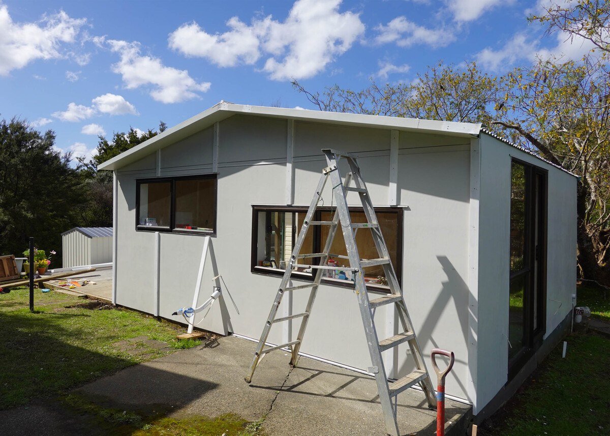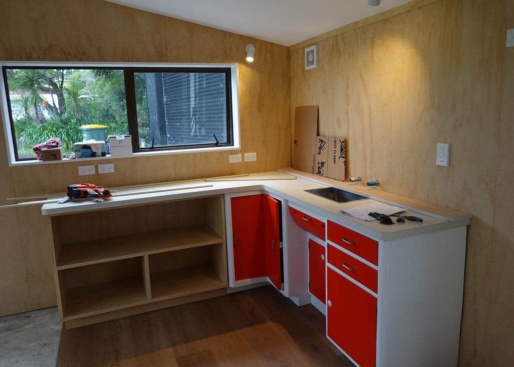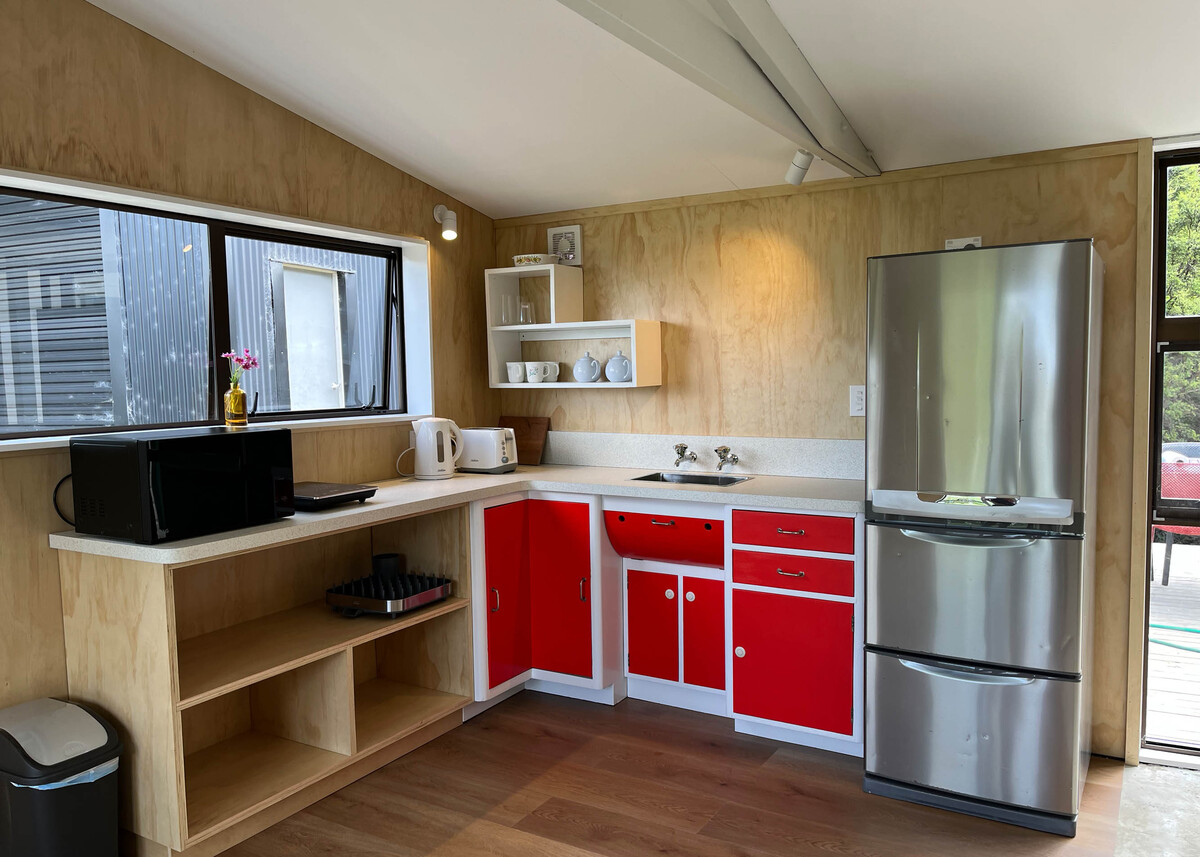Booking the accommodation of your choice - Queen Cottage, Twin Cabin, or both, gives you exclusive use of the open-plan living and dining shed. The Shed is undergoing a complete makeover, in time for the Summer of 2025. Building works are now largely complete - just the floor finish to go and we will be putting it back together. The vintage kitchen has been reinstated and the claw foot bath outside the window planted up as a landscape feature. Fully insulated and with a brand new heat pump, the Shed will be a great place to relax, with decks either side for your choice of bush or sea views.