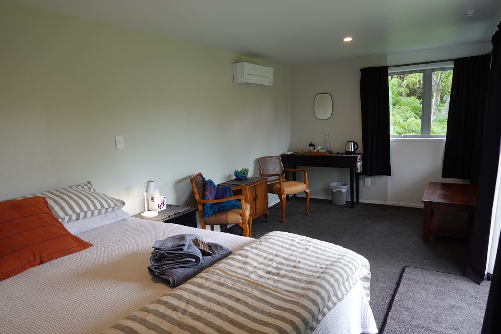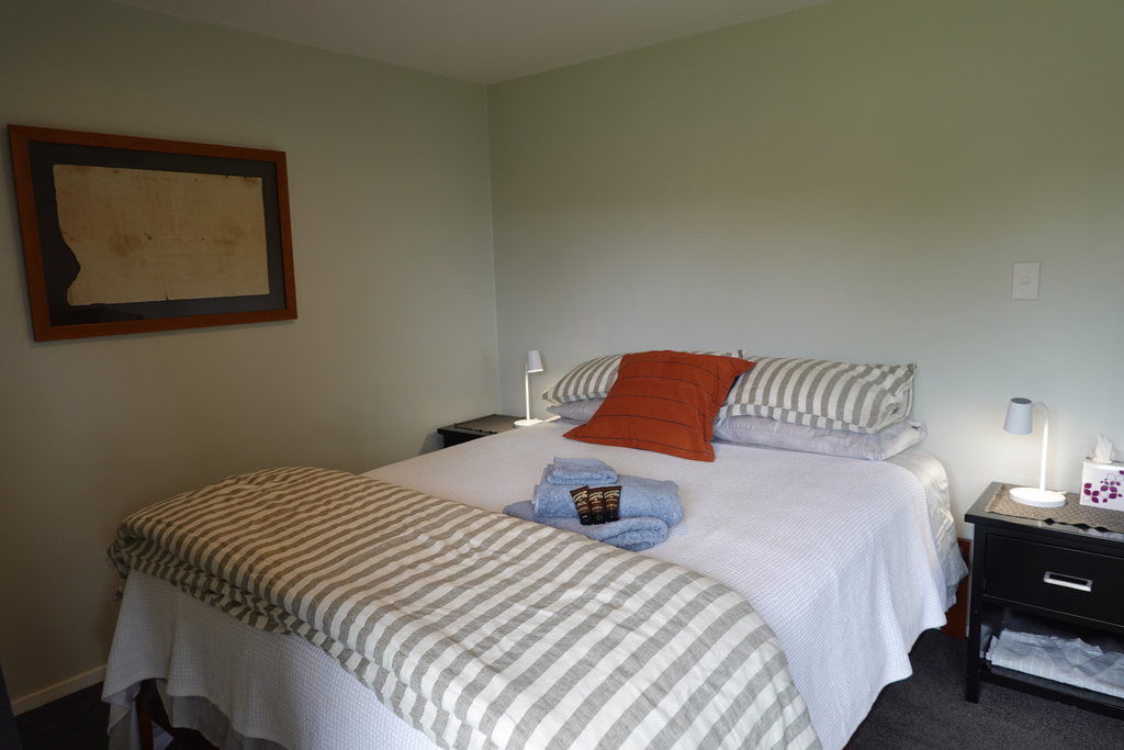 The Queen Cottage sits slightly apart from the other buildings, and has a covered verandah facing the western sunset. Sleep in the comfort of a luxury queen bed; enjoy a cup of tea in bed in the morning. While our compound (that's what they called a collection of separate buildings on Grand Designs recently) of buildings hark back to the old days of an "Outhouse", our modern version has a flushing toilet, shower and laundry. We provide dressing gowns for trips to the Outhouse at night and if necessary an umbrella - it is about 3 metres from the Cottage to the Outhouse.