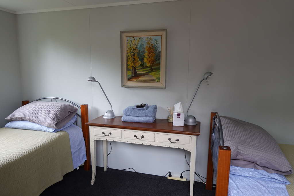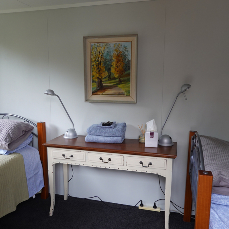 The Twin Single Cabin offers a comfortable stay for two adults who are happy to share a room, or older children who enjoy their own space. Twin single beds and a double wardrobe provide plenty of room to spread out. The cabin is nestled immediately adjacent to the Shed, on one end of the north facing deck. It is a short covered walk to the Outhouse bathroom.