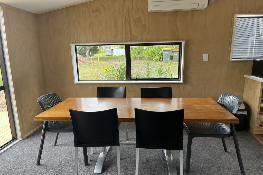 Booking the accommodation of your choice - Queen Cottage, Twin Cabin, or both, gives you exclusive use of the open-plan living and dining shed. The Shed has undergone a complete makeover, in time for the Summer of 2025. The vintage kitchen has been reinstated and the claw foot bath outside the window planted up as a landscape feature. Fully insulated and with a brand new heat pump, the Shed is a great place to relax, with decks either side for your choice of bush or sea views.