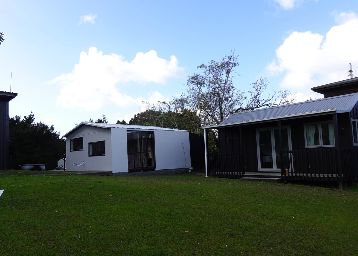 Our accommodation includes two sleeping cabins - one Queen and one Twin Single - a living/cooking Shed, a separate bathroom/laundry "Outhouse", and decks with sea or bush views. We provide linen, all normal kitchen stuff (crockery, cutlery), including fridge, microwave, BBQ, jug, toaster, television, wifi, heat pumps, off street parking, . All you need to bring is food and drink for your stay, clothes, and a smile.